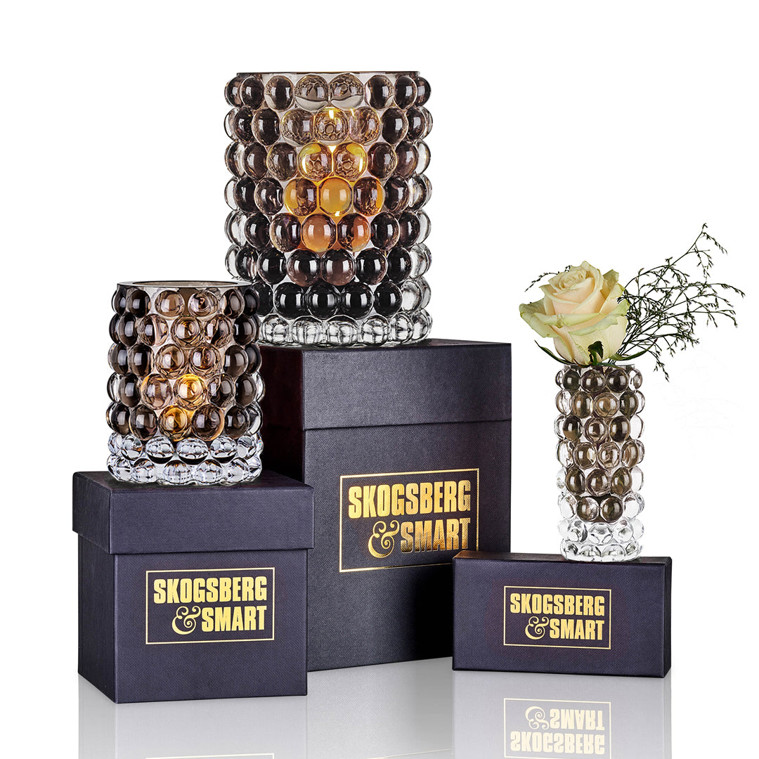 Unsere Windlichte & Vasen bestehen aus Glas und Kristall und sind daher empfindlich. Behandeln Sie sie mit Sorgfalt.