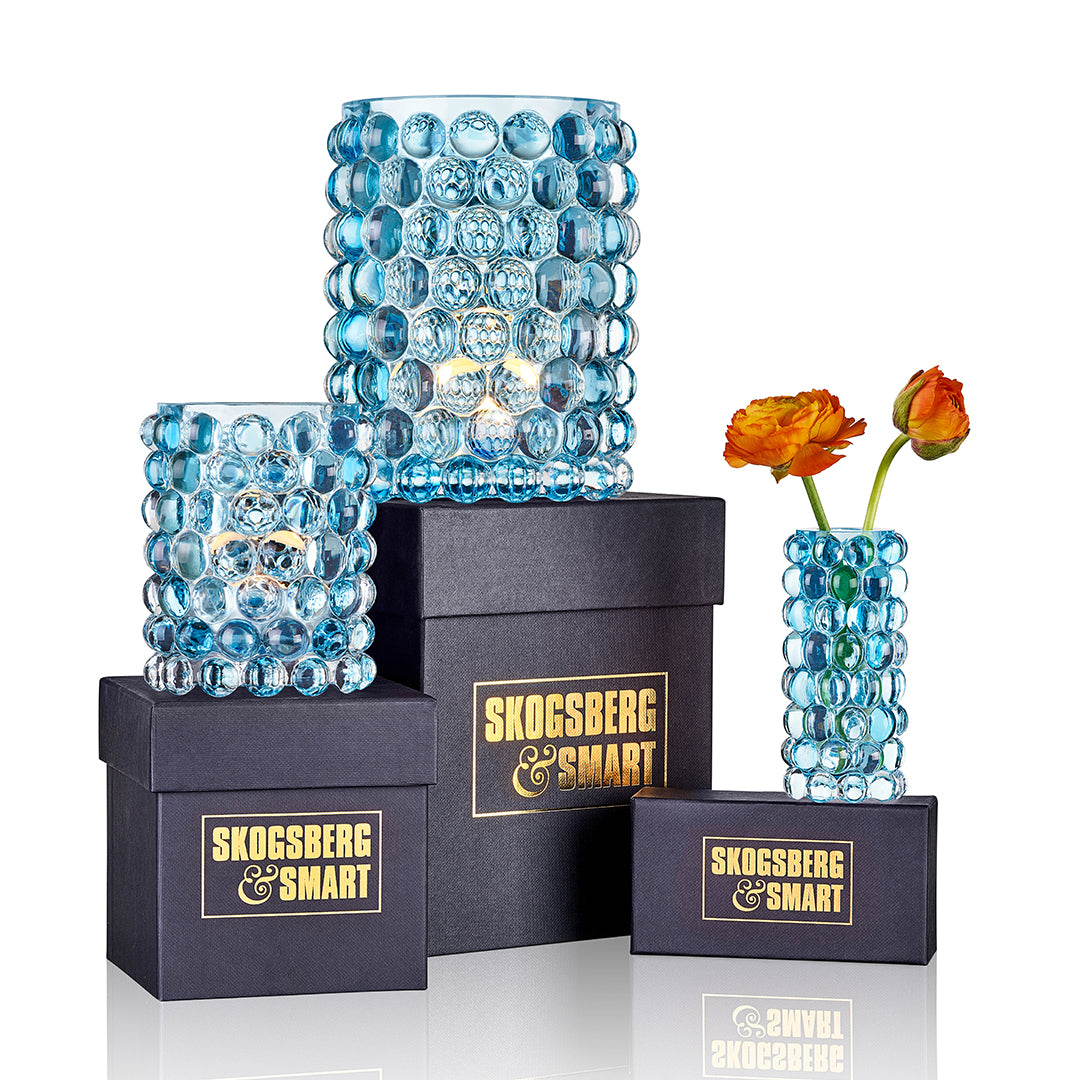 Unsere Windlichte & Vasen bestehen aus Glas und Kristall und sind daher empfindlich. Behandeln Sie sie mit Sorgfalt.