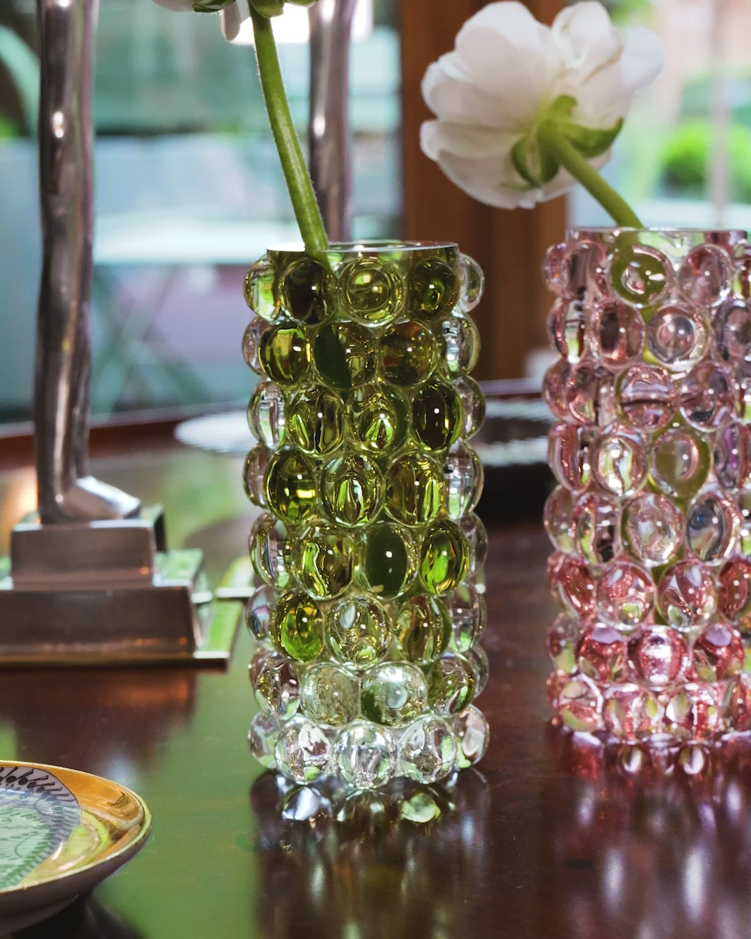 Most Hurricane Boule pieces are designed for dual use — equally elegant as a candle hurricane, a vase for fresh flowers, or as a standalone sculptural object that captures and reflects light within any interior.
