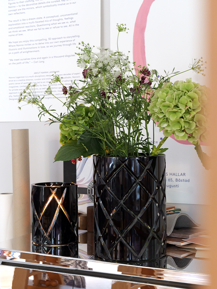 HURRICANE CRYSTAL LAMP MEDIUM, Black Ljuslykta